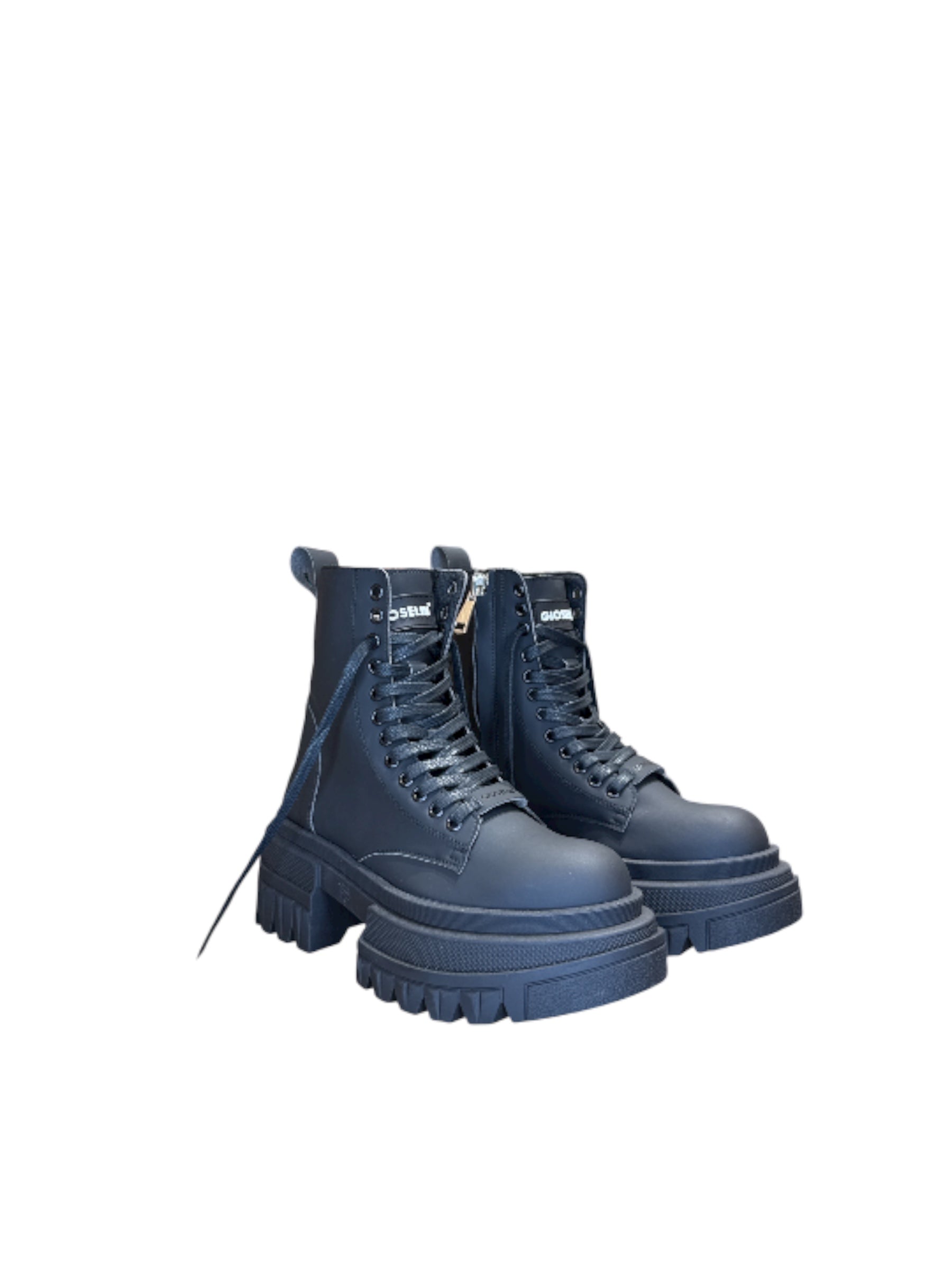 Anfibi in pelle nero. Gioselin. Fondo time in gomma .lacci e zip interno piede
