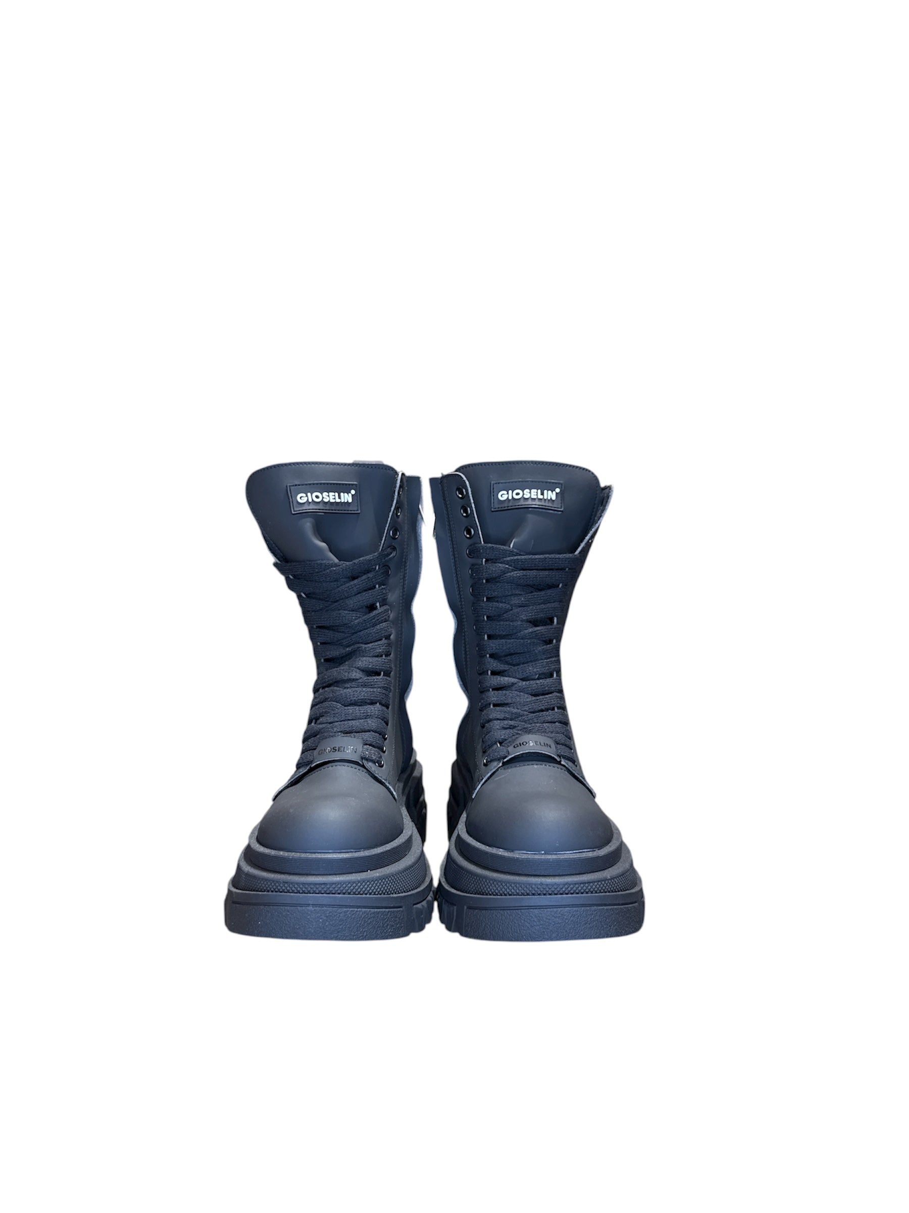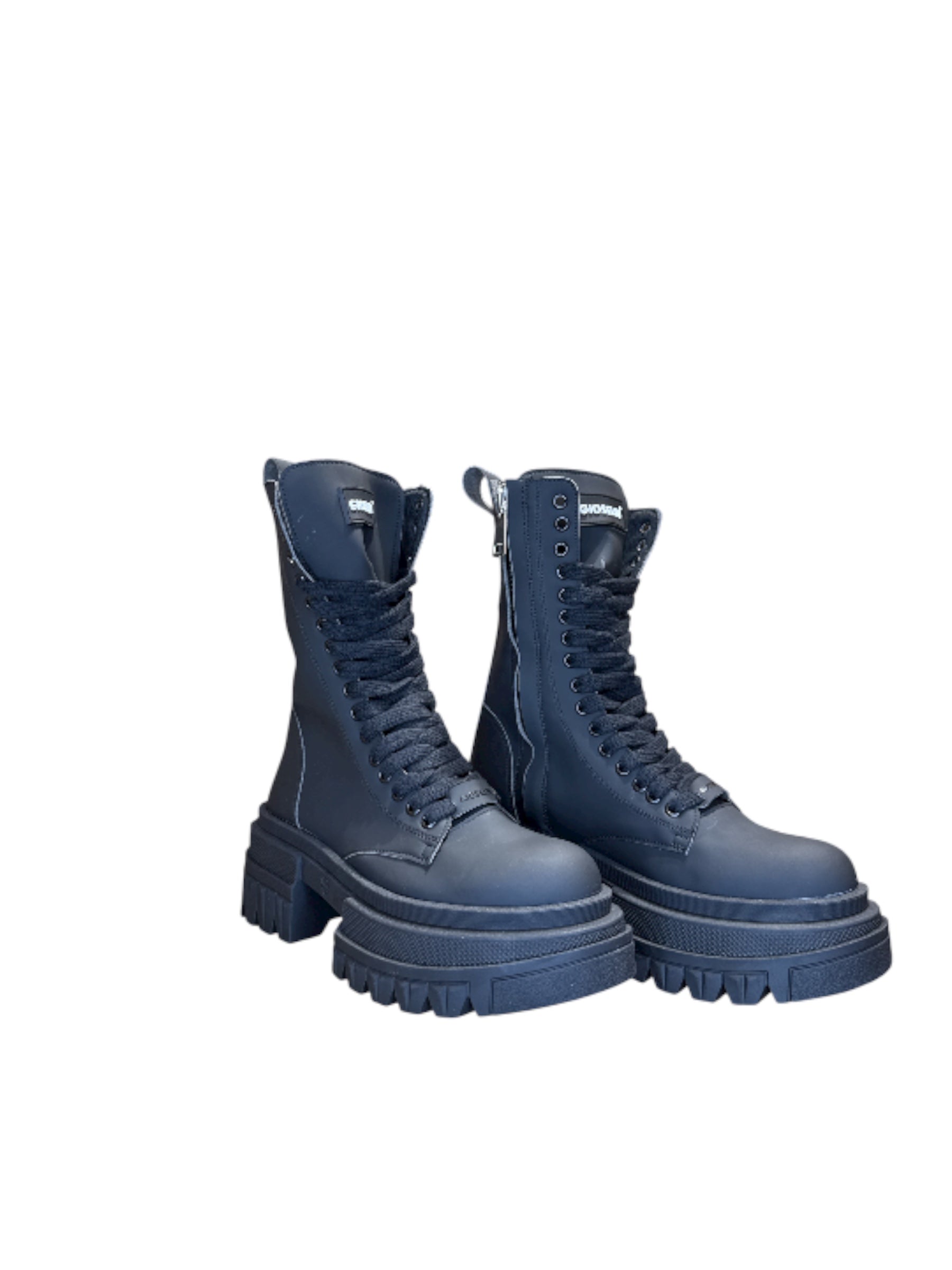 Anfibi in pelle nero. Media altezza. Fondo time in gomma. Lacci e zip interno piede