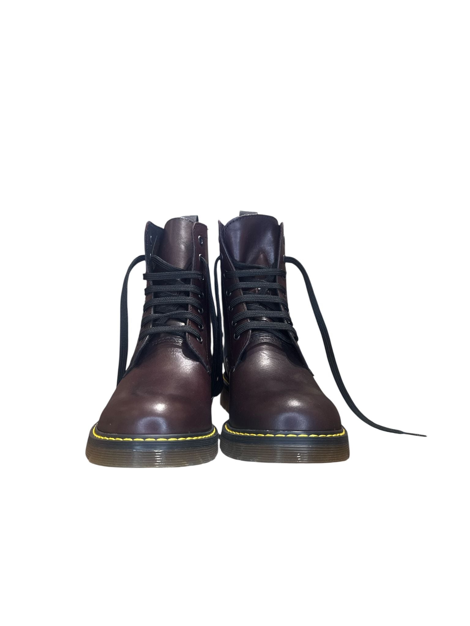 Anfibio in pelle bordo. Cucitura in giallo nel fondo in gomma