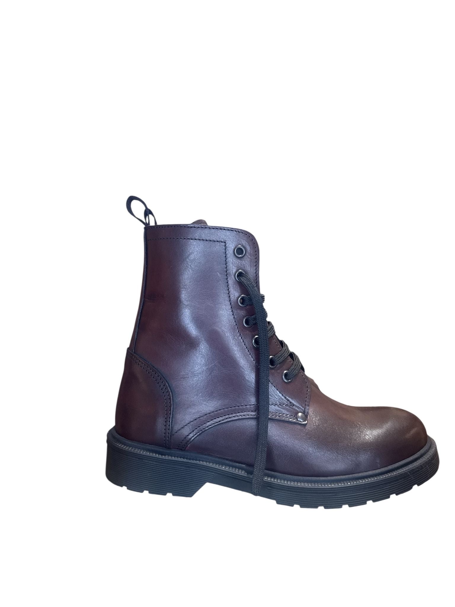 Anfibio in pelle bordo. Fondo in gomma nero