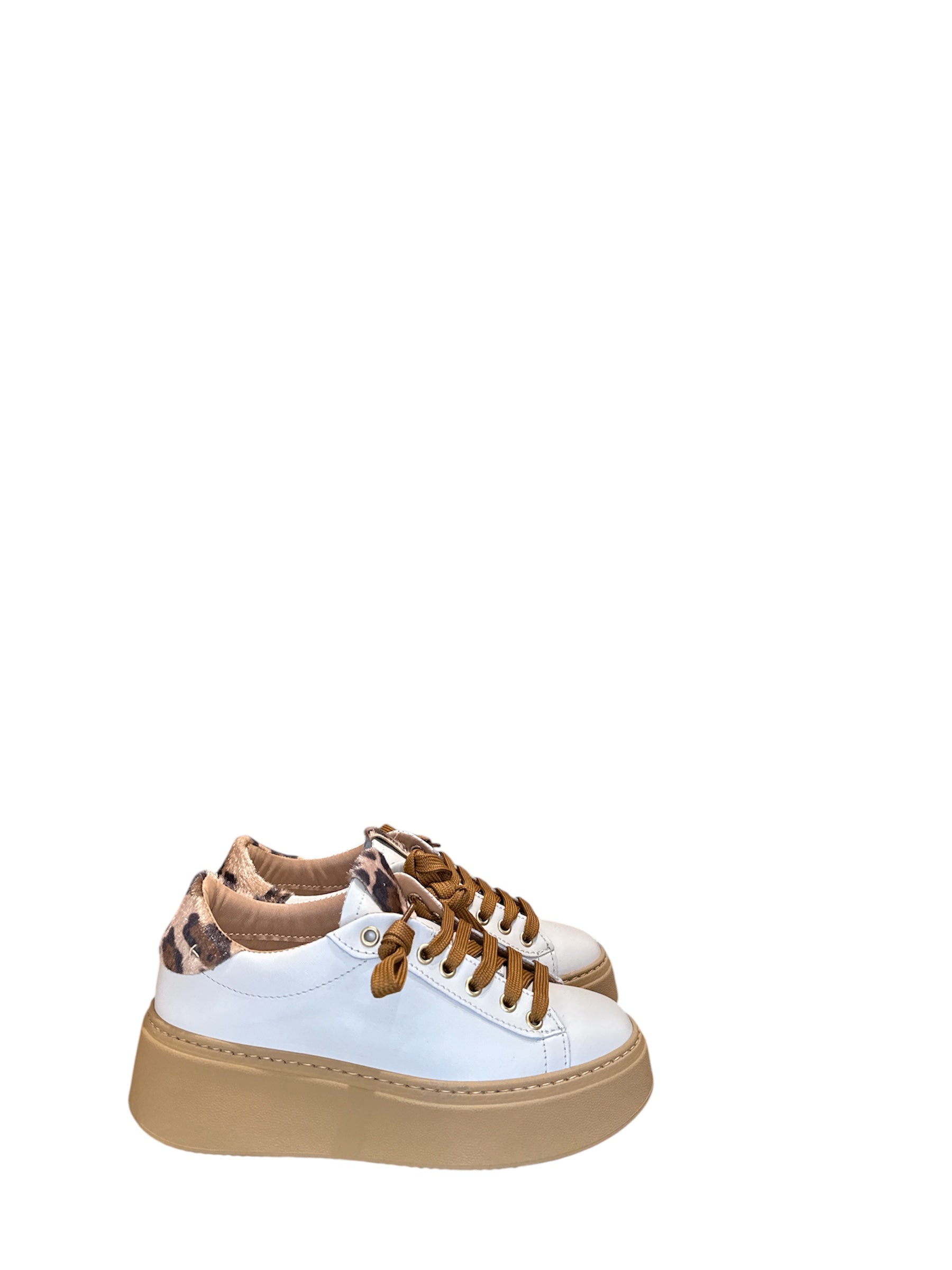 Sneakers in pelle con riporto in simil cavallino. Fondo in gomma alto, circa 6 cm